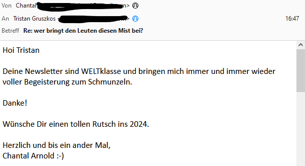 Dann schreib’ ne kurze Nachricht an tristan (at) tristangruszkos.com und ich schau’s mir asasp an.