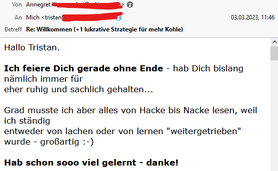 - Ich feedbacke deinen gesamten Funnel (Ads, Landing Page, Emails, Webinar-Slides, etc.) so, wie ich das z.B. für Kunden bei Thorsten Kreutz Consulting gemacht habe