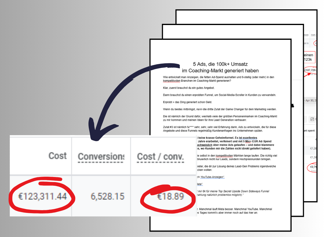 Was ich aber versprechen kann: Wer diese Ad-Templates auf sich und sein Angebot anpasst, hat eine massiv höhere Chance auf eine Winning Ad als alles, was er bisher gemacht hat.Â