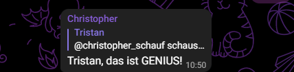 yo Tristan - du haust hier ja ne Menge Statements raus. Hast du mal ein paar Beweise dafür, dass dein Zeug auch funktioniert?